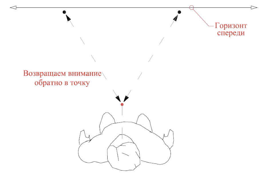 1. Внимание на точке в 20 см перед центром лба (красная точка).