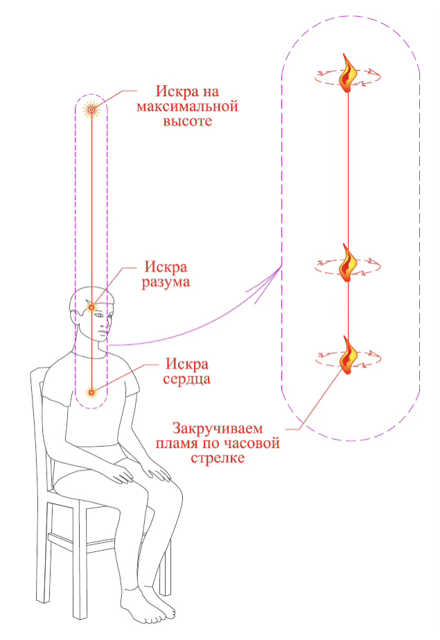 1. Настраиваемся на собственную искру сердца, зажигаем в ней огонек как пламя свечи, удерживаем пламя ровным, без колебаний.