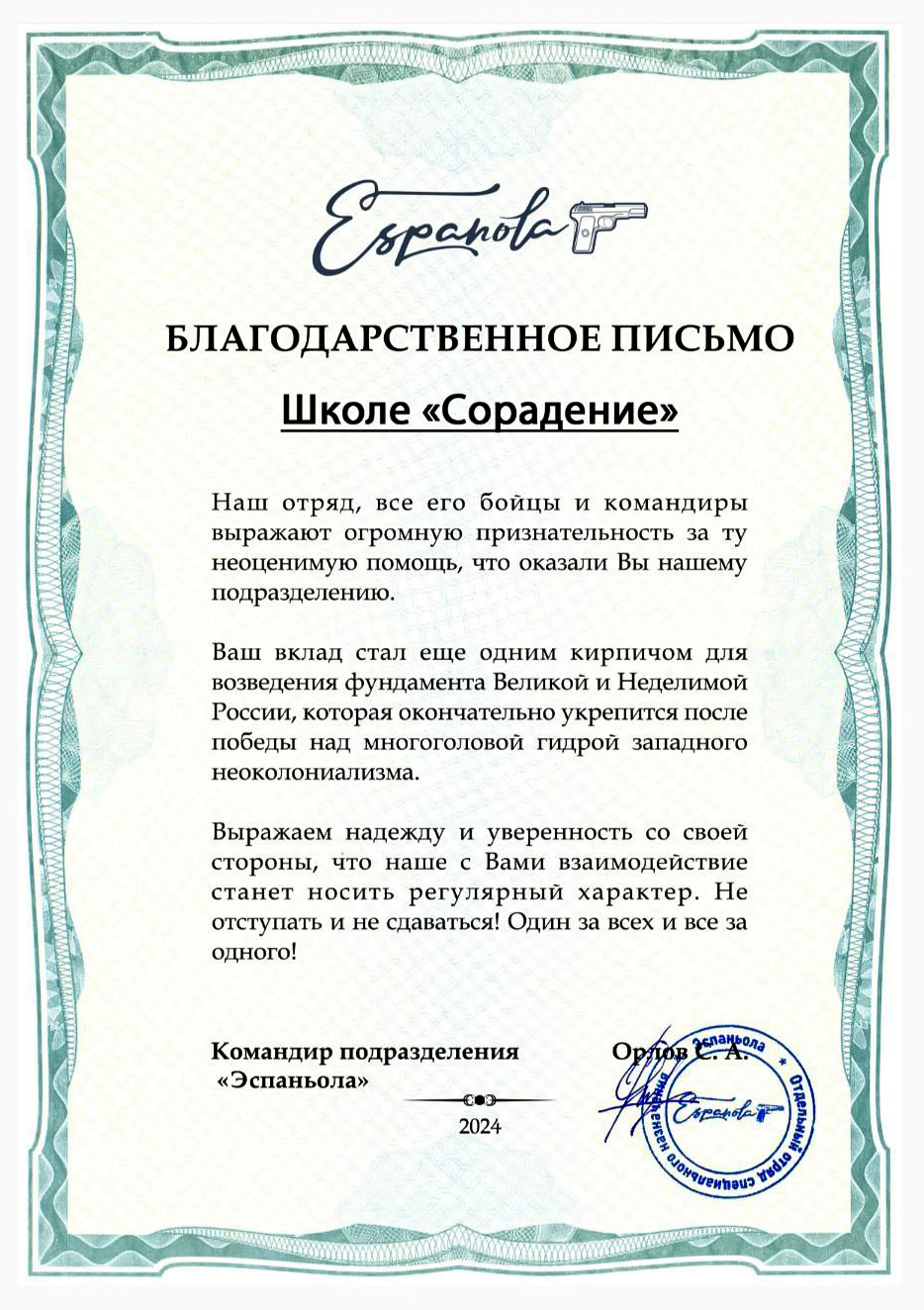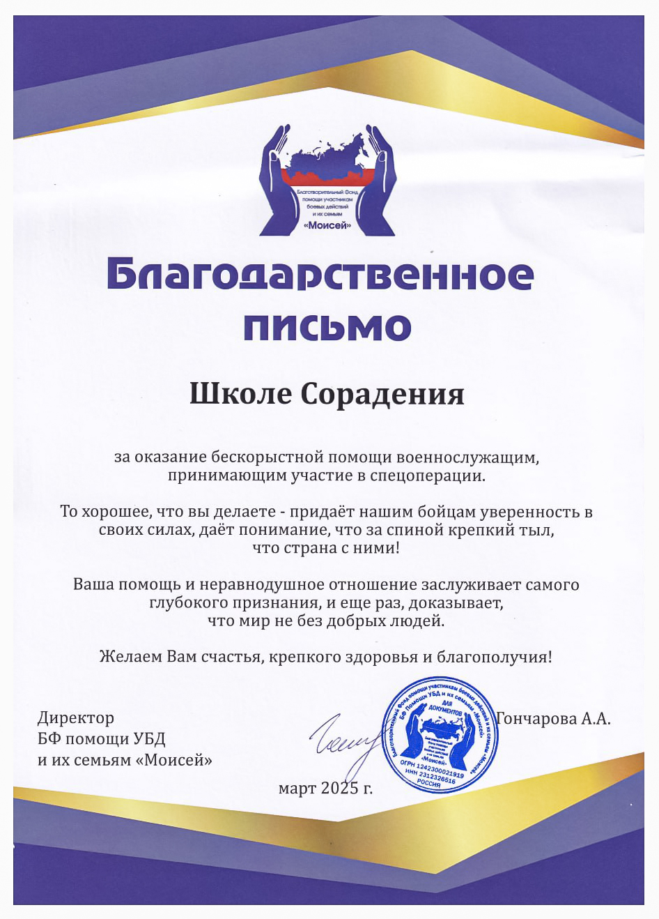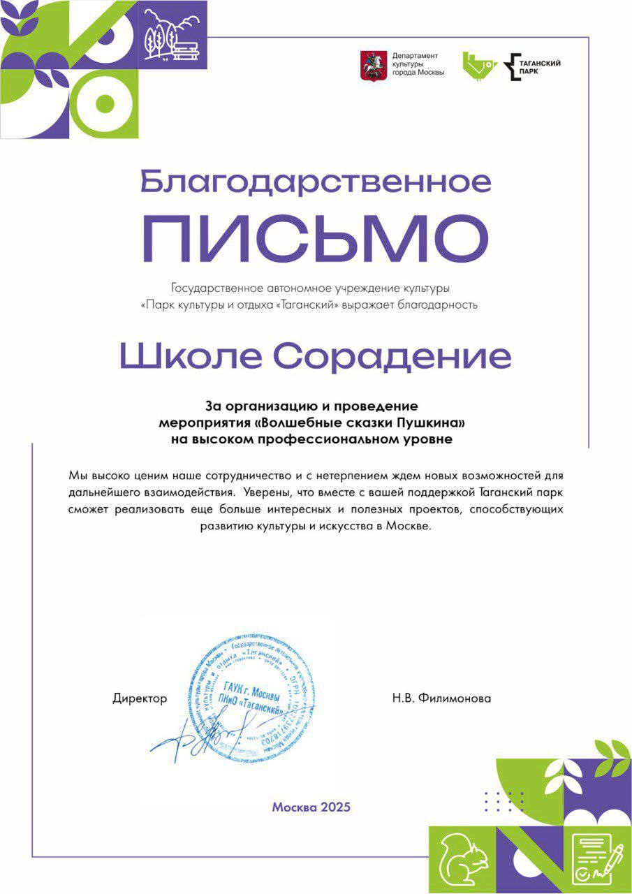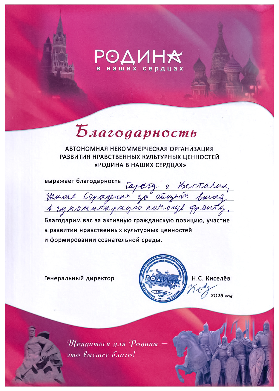 Благодарности школе Сорадение