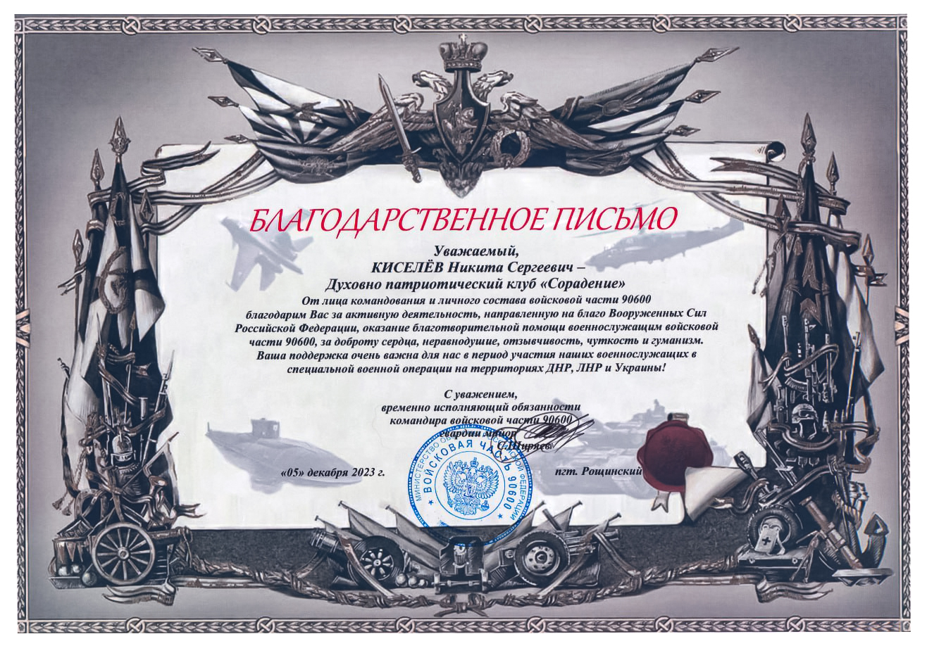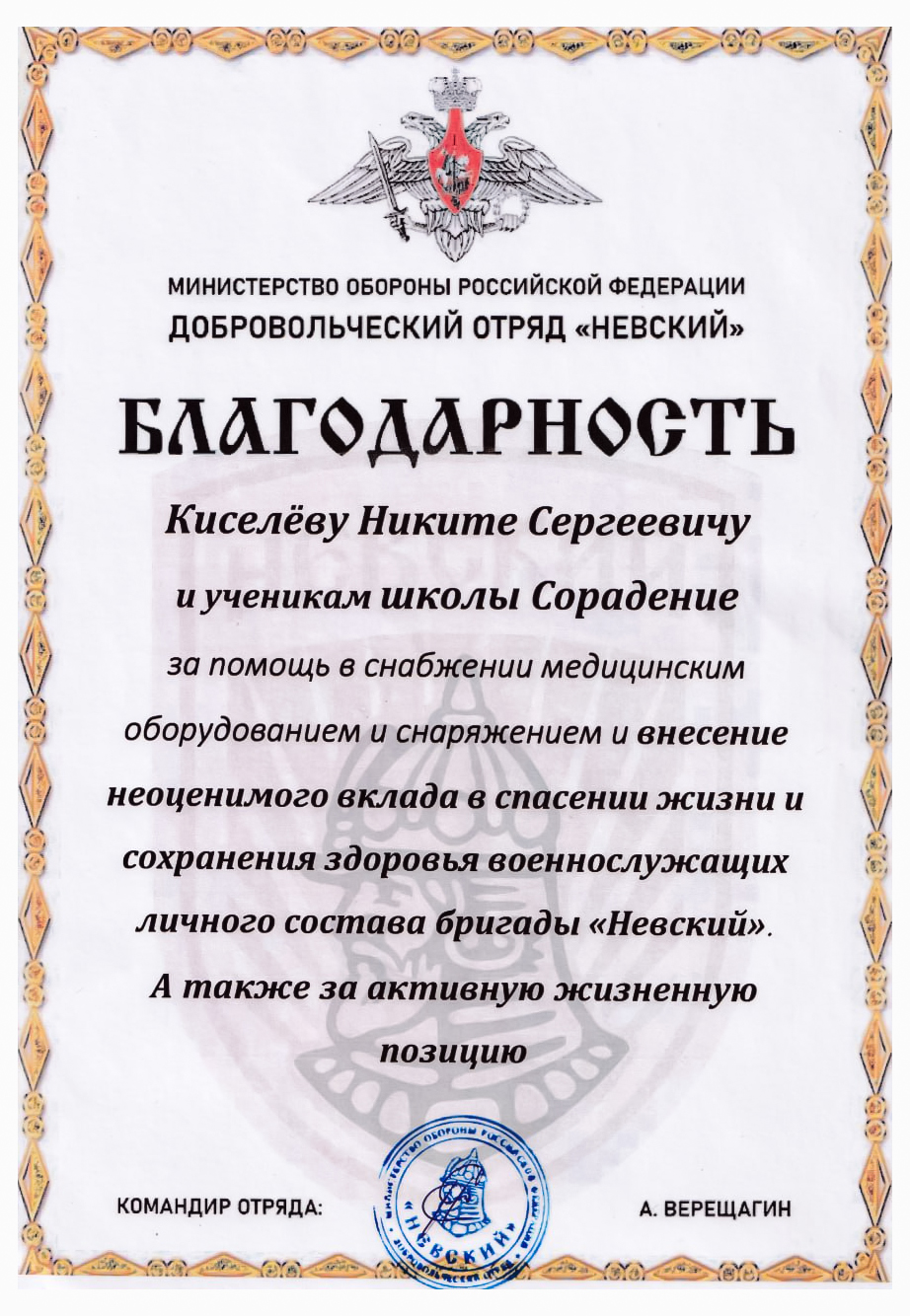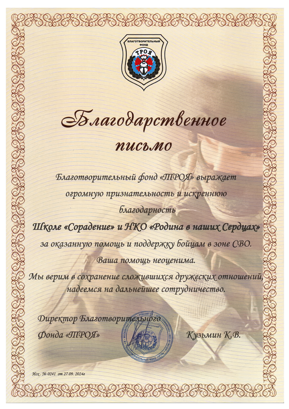 Благодарности школе Сорадение